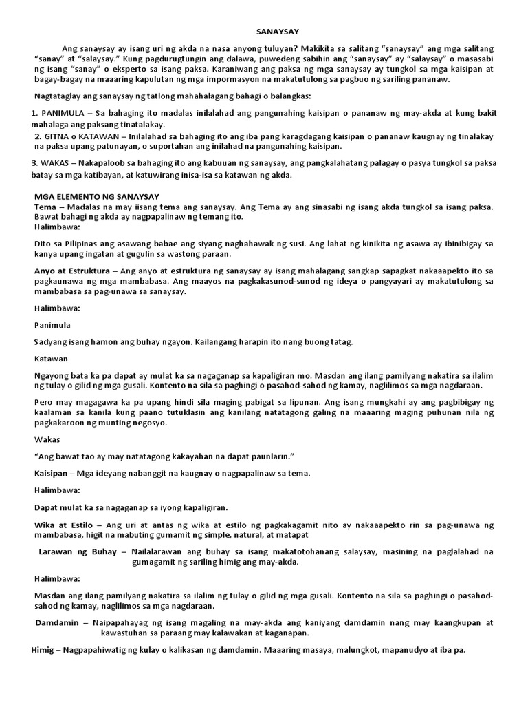 Ang kabuuan ng sulatin gaano man kahaba ay. Mga Elemento ng Sanaysay. Ito ay ang mga sumusunod.