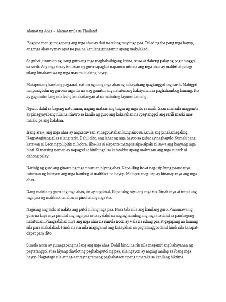 Mga halimbawa ng kwento mula sa timog silangan asya. Alamat ng thailand alamat ni. FILIPINO 9 Unang Markahan Modyul 1.