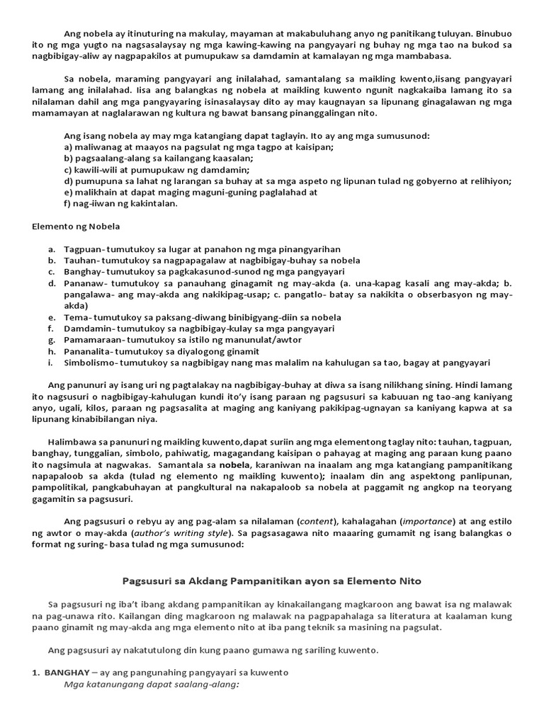 Nobela At Sanaysay Notes Docx Nobela Ang Nobela Ay Isang Mahabang Kathang Pampanitikan Na Naglalahad Ng Mga Pangyayari Na Pinaghahabi Sa Isang Mahusay Course Hero