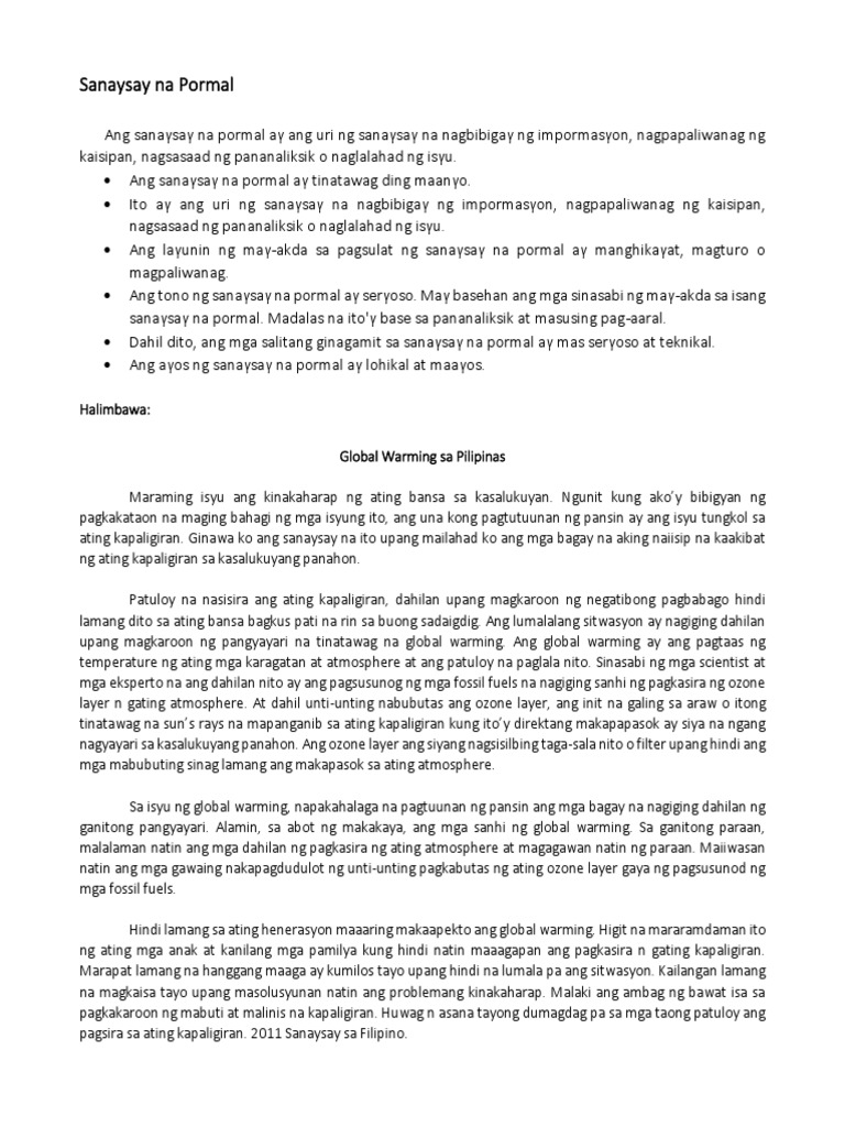 Ang ilang mga sikat na social media site na kadalasang ginagamit ngayon ng mga makabagong anak ay ang mga Facebook Twitter Yahoo Watpad Tumblr Google ilan. Isang halimbawa ng di-pormal na sanaysay tungkol sa magulang. Panitikang Pilipino Ang dahilan nito ay ang pagputol ng mga puno at pagtapon ng mga basura sa daan. Mga sikat na sanaysay halimbawa . Tampok dito kung paano maaring ingatan at alagan ang inang kalikasan na unti-unti nang nasisira dahil sa pang-aabuso ng mga tao. Mga halimbawa ng Pormal o maanyong SanaySay. Mga Sanaysay sa Filipino - Tungkol sa Kabataan Kapag Lumaki Na Sulating di Pormal Pinalaki tayo sa kasinungalingan. Nawa kayo ay masiyahan at maging inspirasyon ang mababasa ninyong mga example o halimbawa ng tanaga 7 7 7 7. Tunay ngang ang edukasyon sa buhay ng bawat isa ay kapara ng isang walang katapusang paglalakbay sa mundong sinasaklawan ng aspektong pagbabago. Sundan ang link na ito para sa kahulugan uri anyo at mga halimbawa ng panitikan. M...