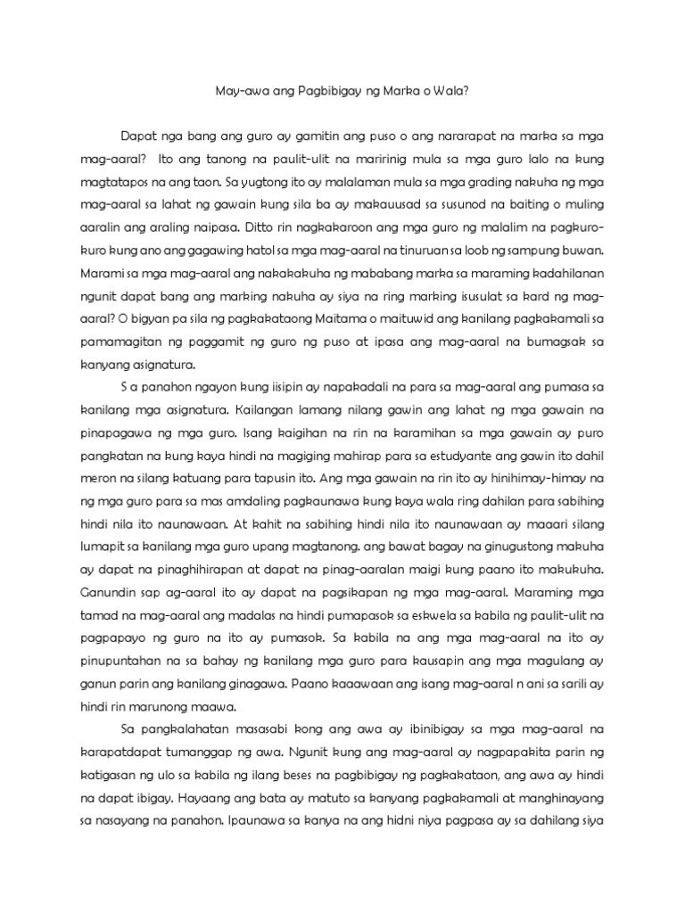 SANAYSAY TUNGKOL SA COVID-19 Sa panahong ito milyun-milyong Pilipino ang naapektuhan ng. Dagdag pa dyan ang paglaganap ng modernisasyon na sanhi sa labis na. Pangkalahatan tatalakayin ng isang sanaysay ang isang katanungan na hindi matatag na sinang-ayunan ng lahat tulad ng isang argument essay o editoryal ng pahayagan habang ang isang ulat ay malamang na higit pa tungkol sa pagpapaliwanag ng mga sagot na sa pangkalahatan ay tinanggap tulad ng isang aklat.