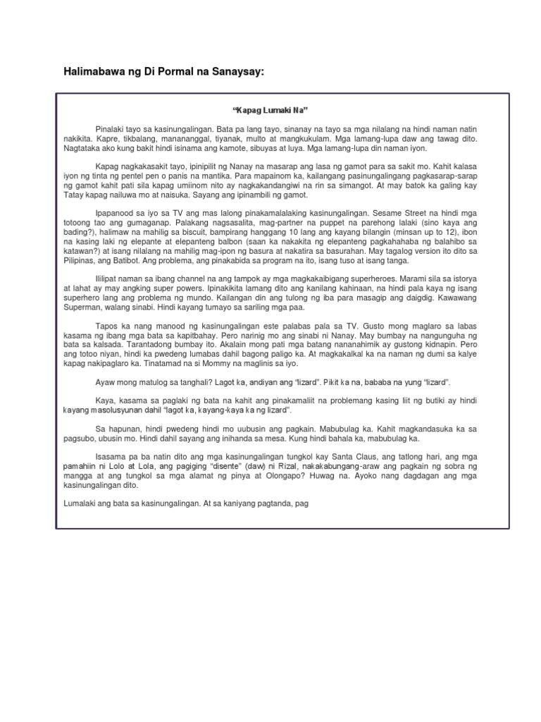 Halimabawa Ng Di Pormal Na Sanaysay Pdf