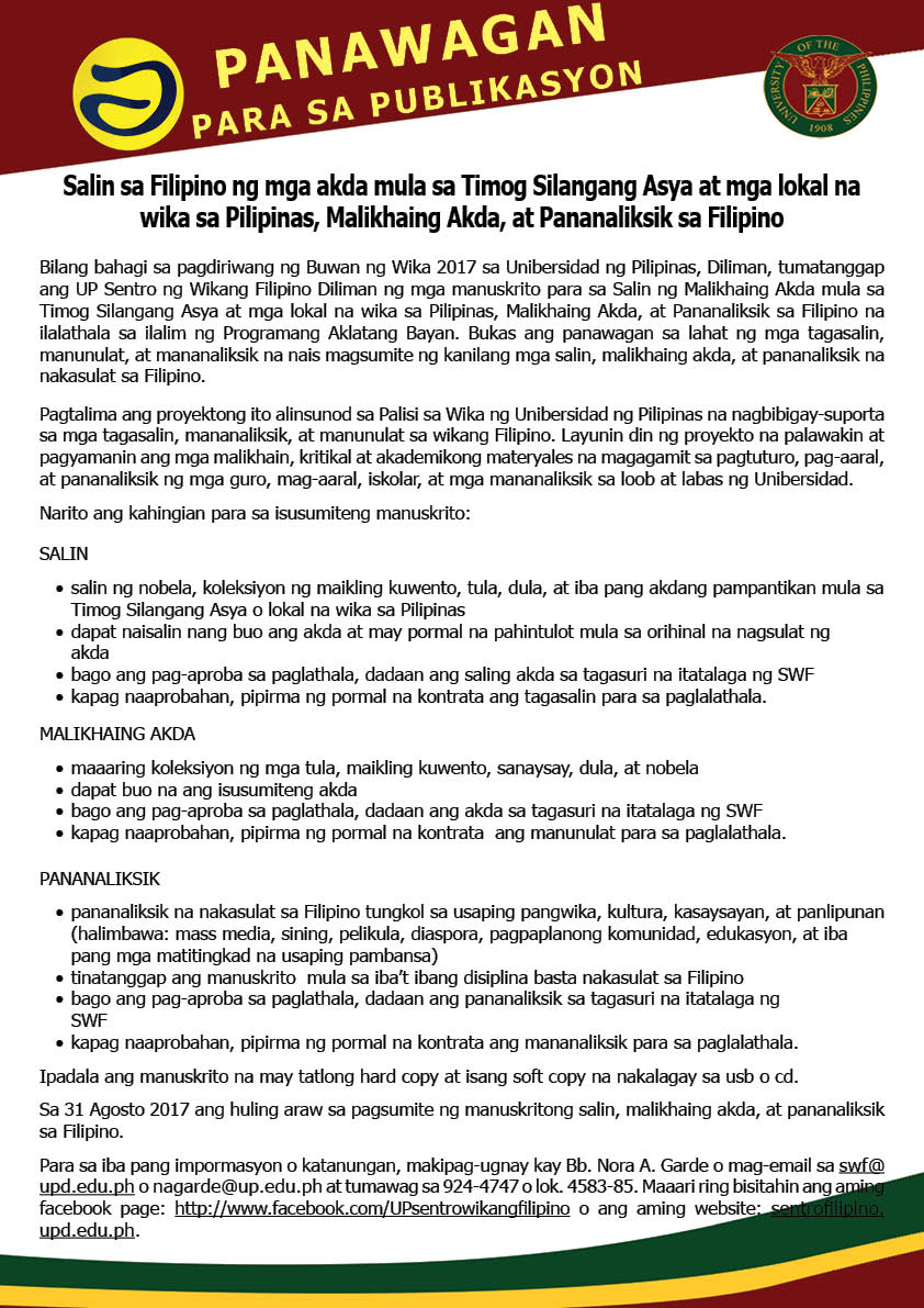 Sentro Filipino On Twitter Salin Sa Filipino Ng Mga Akda Mula Sa Timog Silangang Asya At Mga Lokal Na Wika Sa Pilipinas Malikhaing Akda At Pananaliksik Sa Filipino Https T Co Qmdgvyfjvo Twitter