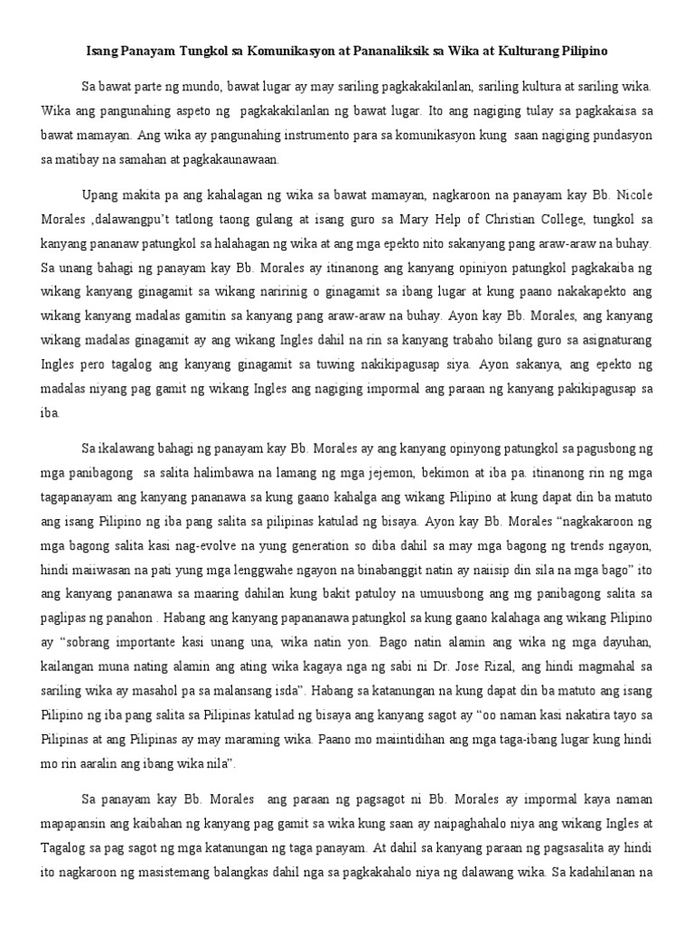 Mga Halimbawa Ng Sanaysay Tungkol Sa Wika Ng Pagkakaisa